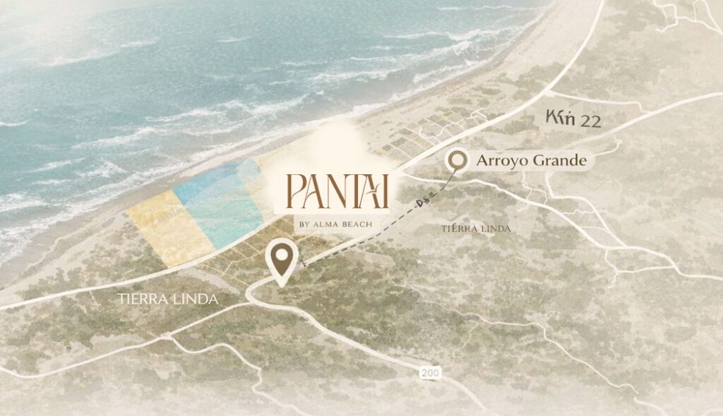 PANTAI está ubicado en la Zona Norte de Cartagena, kilómetro 22 – sector Arroyo Grande, con salida directa al mar Caribe y acceso a ALMA Playa.